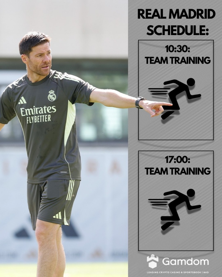 08月10日讯 皇马官方公布了当天(8月10日)的历练想象,在球队新帅哈维-阿隆索的率领下,皇马今天在10点30分和17点进行了两次历练。