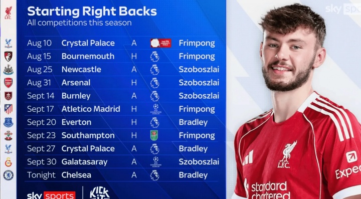 此役布拉德利担任利物浦首发右后卫,据天外体育统计,本赛季利物浦莫得任何右后卫勾通4场首发。