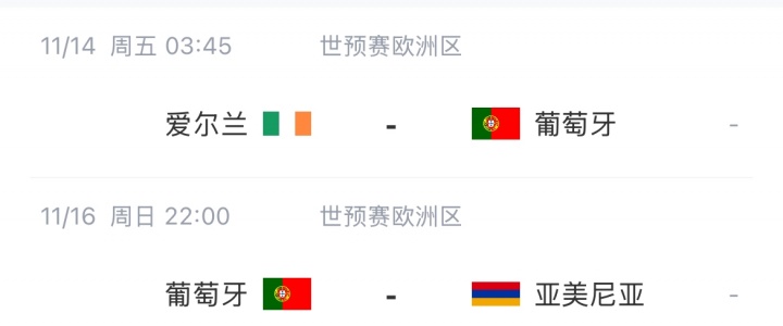 葡萄牙世初赛终末两场分辨对阵爱尔兰和亚好意思尼亚,下轮取胜即可晋级。