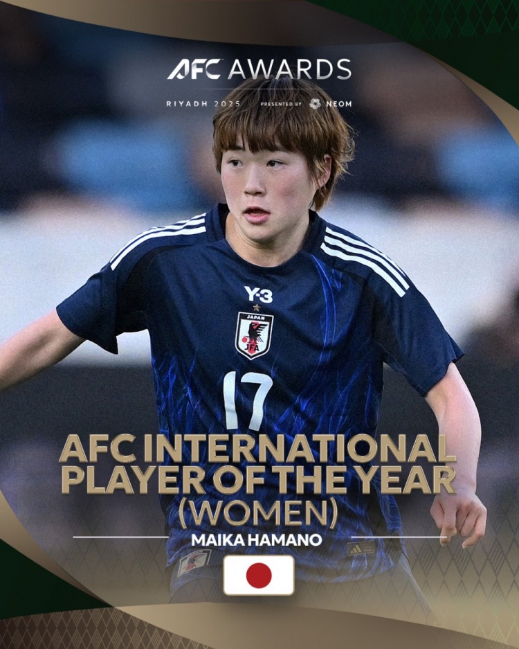 官方:滨野舞香当选亚足联年度亚洲最好国际女足球员