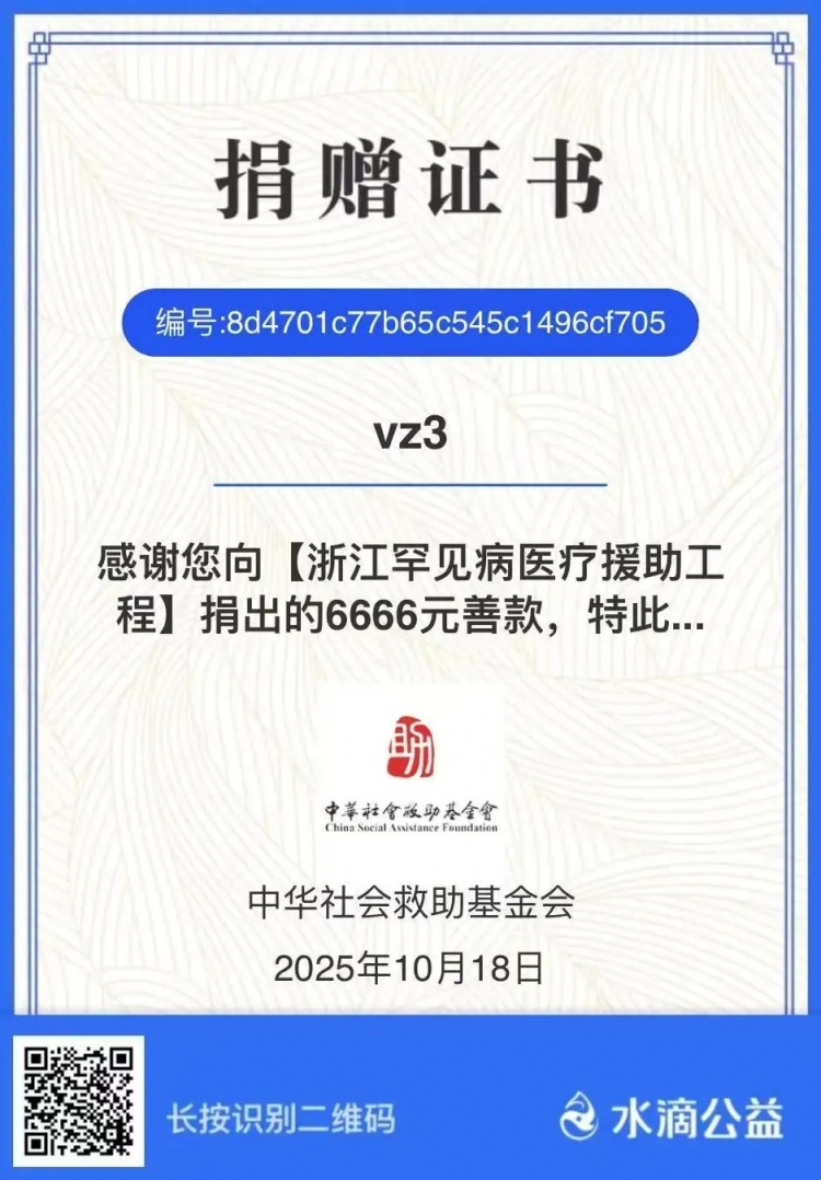 中华社会救助基金会的【浙江无情病医疗援助工程】,恒久竭力于为无情病患者提供医疗用度相沿,缓解其家庭的经济压力,这亦然黄威选拔该项观念蹙迫原因。他坦言,伤病时代更能体会到病痛带来的窘境,但愿我方的浅薄之力能为无情病患者撑起一派蓝天。