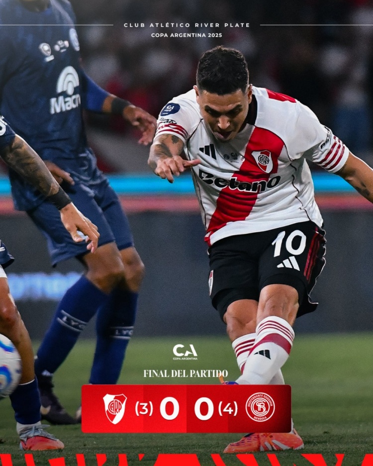 10月25日讯 今天进行的阿根廷杯半决赛,河床惯例本事0-0战平门多萨独处,最终河床点球大战3-4落败无缘决赛。门多萨独处队史初度晋级阿根廷杯决赛,将对阵阿根廷后生东谈主。