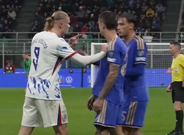 随后挪威准备主罚纵情球,哈兰德与曼奇尼再次发生冲破,哈兰德的曼城队友多纳鲁马抱着他尝试劝架,但两边球员抓续斗嘴,最终哈兰德和埃斯波西托各吃一张黄牌。而在争执之后仅过了10分钟,哈兰德2分钟2球反超比分。