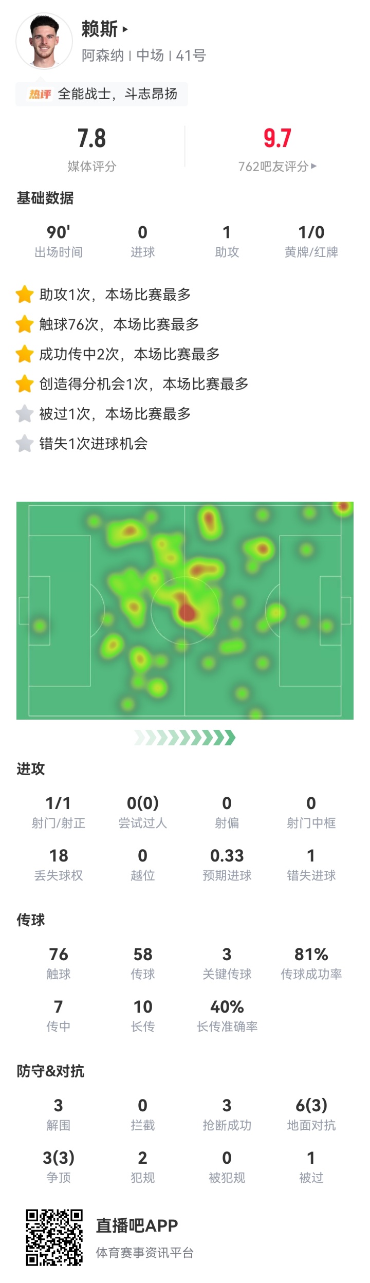 “今天有很多精彩的发扬,尤其是埃泽,但这位球员(赖斯)再次成为咱们的后援、将军和带队战士。阿森纳在千禧年最佳的一笔引援!”