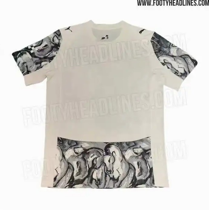 这款球衣以米色为主色彩,正面和后头部分王人有密集的概述马头图案,盘算灵感开首于中国传统水墨画。该款球衣旨在庆祝2026年的中国农历新年,特殊是行将到来的马年(2026年2月17日驱动)。