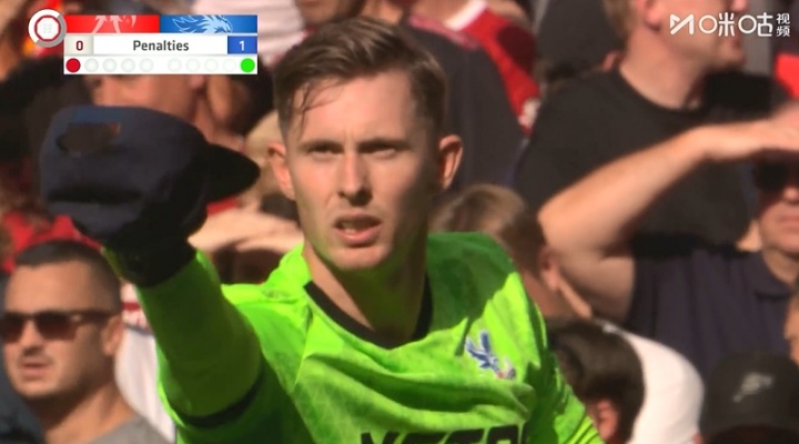 水晶宫门将亨德森头戴鸭舌帽,在点球大战中两度扑出利物浦点球,并在扑出麦卡的点球后脱帽礼庆祝。