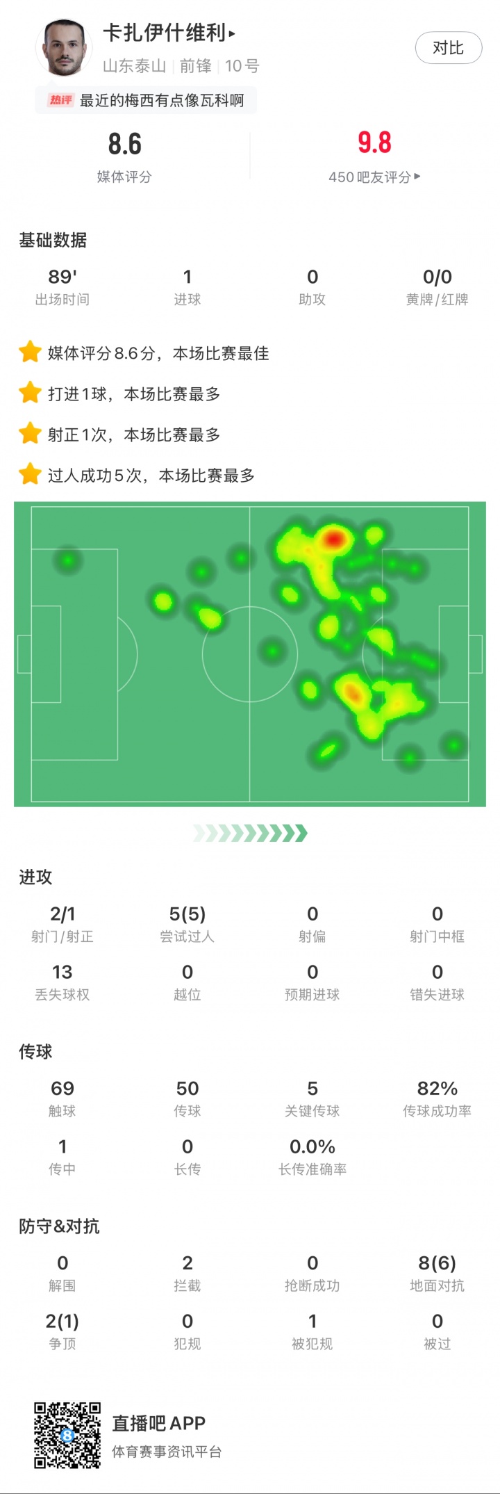 【】中超第18轮最好球员:卡扎戴帽精明,本赛季第二次当选