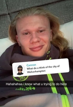 球迷问哈兰德对狼队所在城市的见地,哈兰德:思给我下套是吧