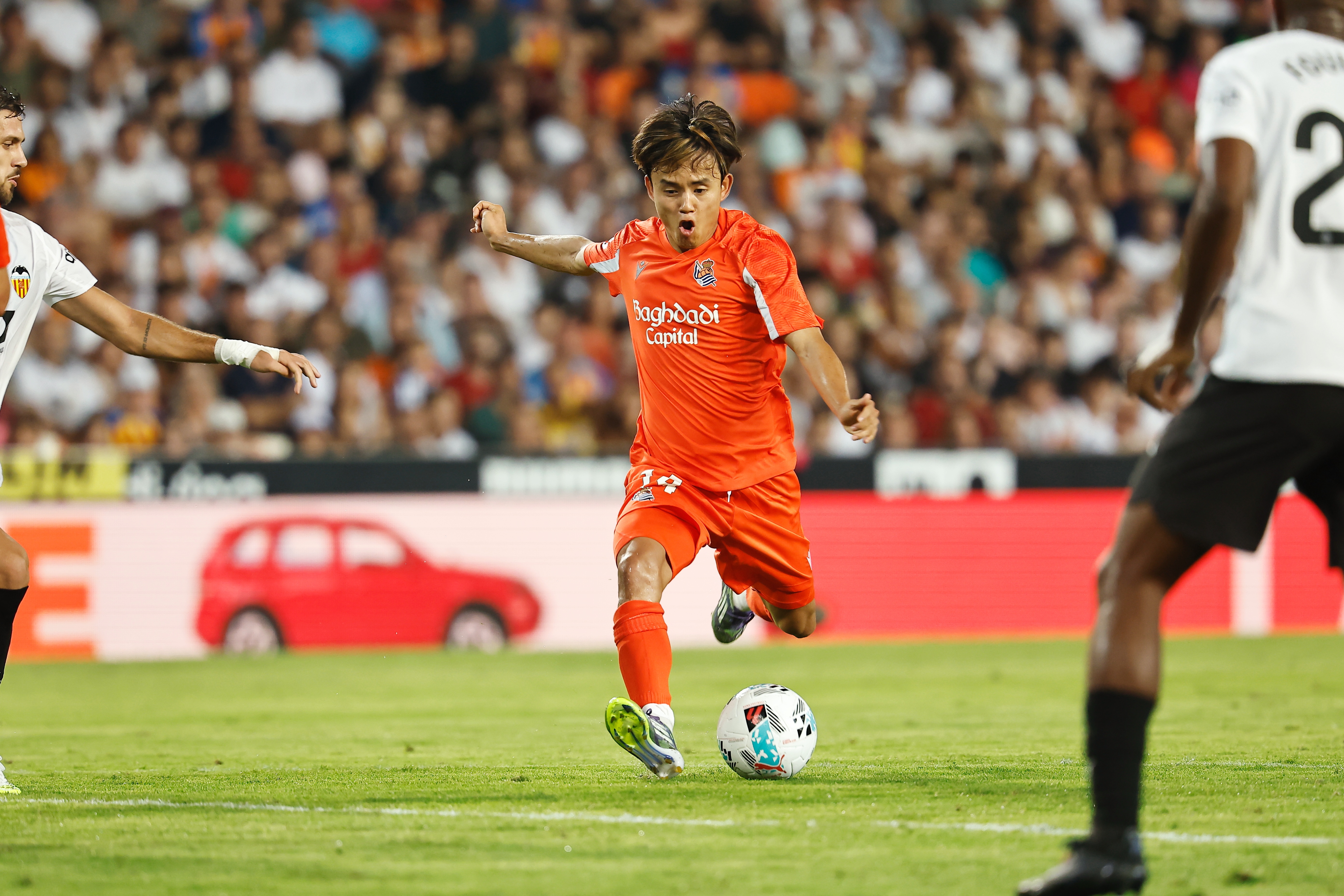 08月17日讯 西甲首轮比赛,皇家社会1-1战平瓦伦西亚,24岁日本国脚久保建英为皇社打入扳平球。