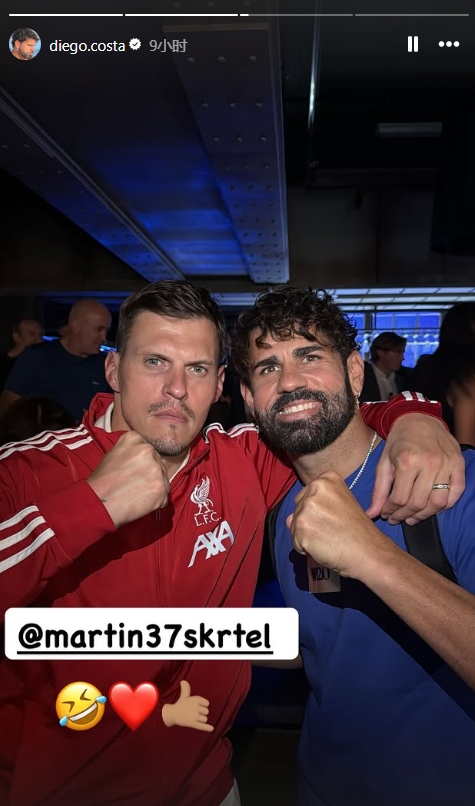 但在此次外传赛的赛后,37岁的迭戈-科斯塔又晒出了与40岁的斯科特尔的合影↓
