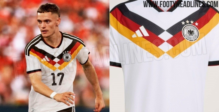 阿迪达斯谢幕之作!德国队天下杯球衣谍照:黑红黄三色V形图案