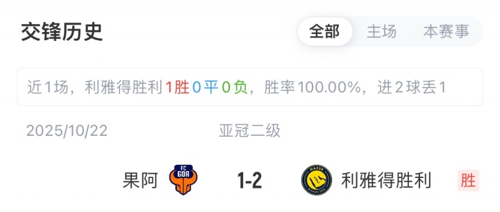 成功亚冠二级小组赛3轮全胜位居D组第一,联赛7轮全胜积21分位居沙特联榜首;果阿亚冠二级小组赛3轮全负位列D组垫底,联赛14胜6平4负积48分位居印度超第二。