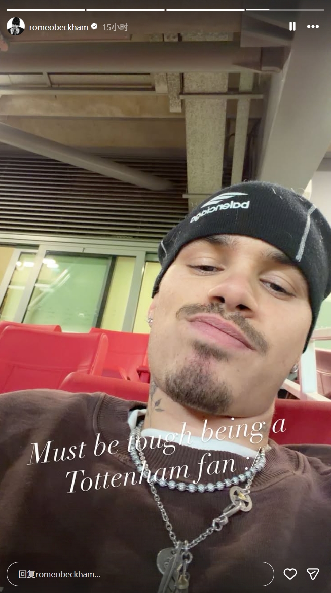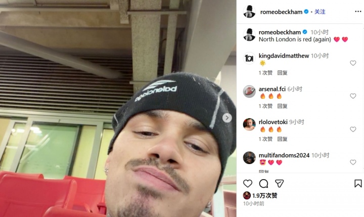 11月24日讯 贝克汉姆的次子罗密欧·贝克汉姆在外交媒体上连发多条动态,庆祝阿森纳在北伦敦德比中大捷,还不忘嘲讽热刺。