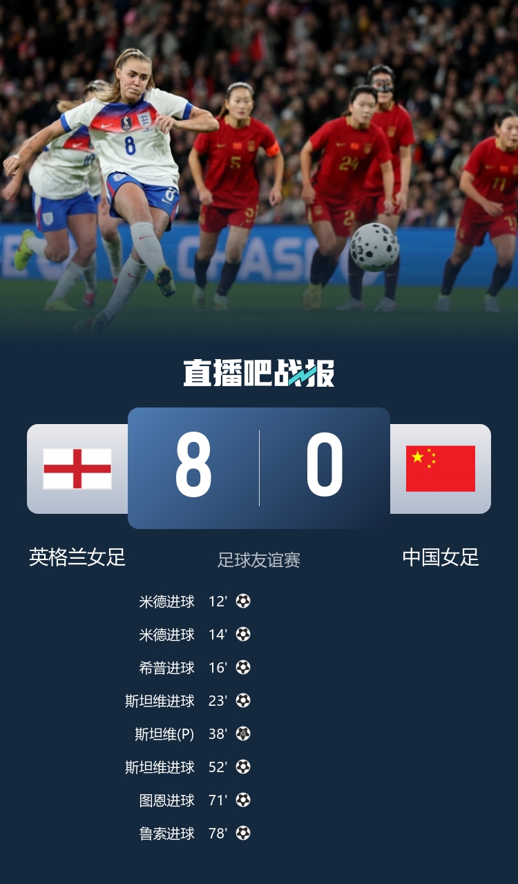 11月30日讯 当天凌晨收尾的一场足球友谊赛,中国女足0-8客场不敌英格兰女足。