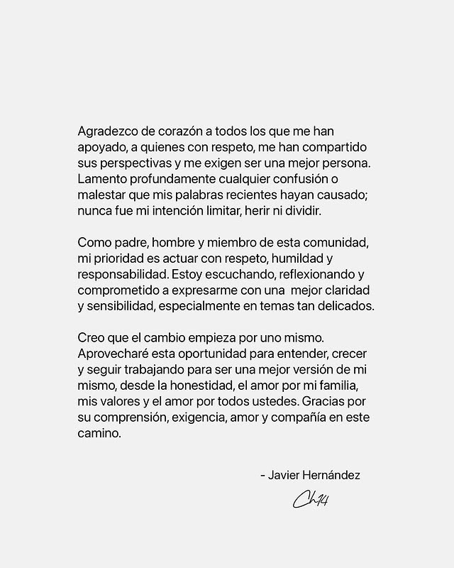 我诚意感谢总共扶助我的东谈主,感谢那些怀着尊重之心与我共享不雅点、鼓动我成为更好的东谈主的东谈主们。关于我最近的言论所形成的任何困惑或不适,我深表歉意,我的本意绝非甩手、伤害或别离任何东谈主。