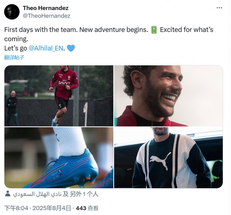 8月4日讯 转会利雅得月牙后,特奥社媒晒出覆按照,展示了我方和球队的覆按情况。