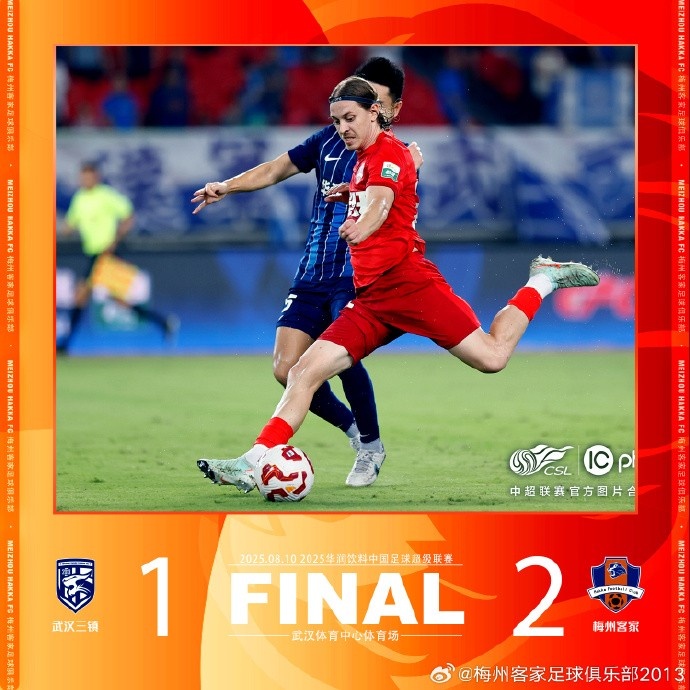 北京时间8月10日20:00,2025华润饮料中国足球超级联赛第20轮比赛,梅州客家做客武汉体育中心体育场对阵武汉三镇。