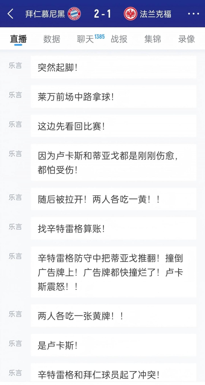 董路在社媒晒出一则2020年德国杯拜仁vs法兰克福比赛的视频,当时蒂亚戈被辛特雷格一把推到广告牌上,卢卡斯愤怒地帮队友出头。主裁向卢卡斯和辛特雷格各出示一张黄牌。