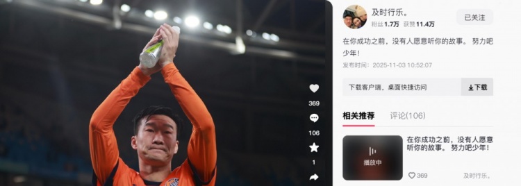 赛后,海牛中后卫刘军帅在个人社交媒体中写道:在你成功之前,没有人愿意听你的故事。 努力吧少年!