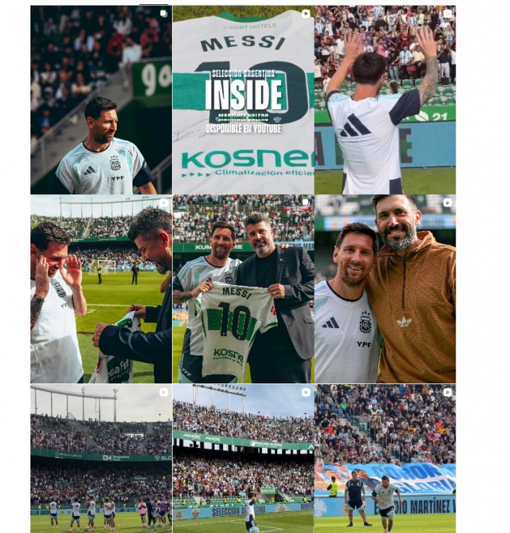 从开始预热再到阿根廷出场、阿根廷训练、梅西获赠球衣、梅西与萨拉维亚交流、梅西与球迷打招呼,埃尔切官方社媒一直在更新,不算快拍,光是ins帖子就发了16条。