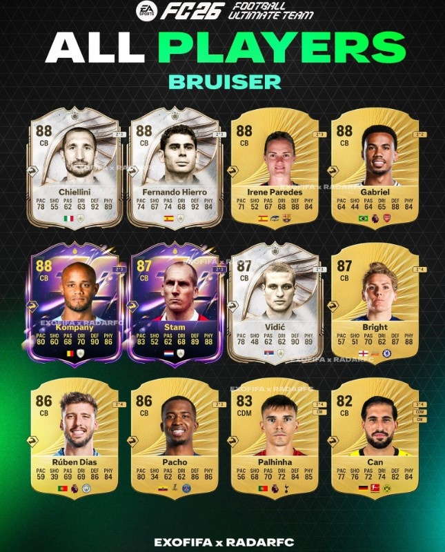 FC26金肌肉球员曝光:现役加布里埃尔、鲁本-迪亚斯、帕乔在列
