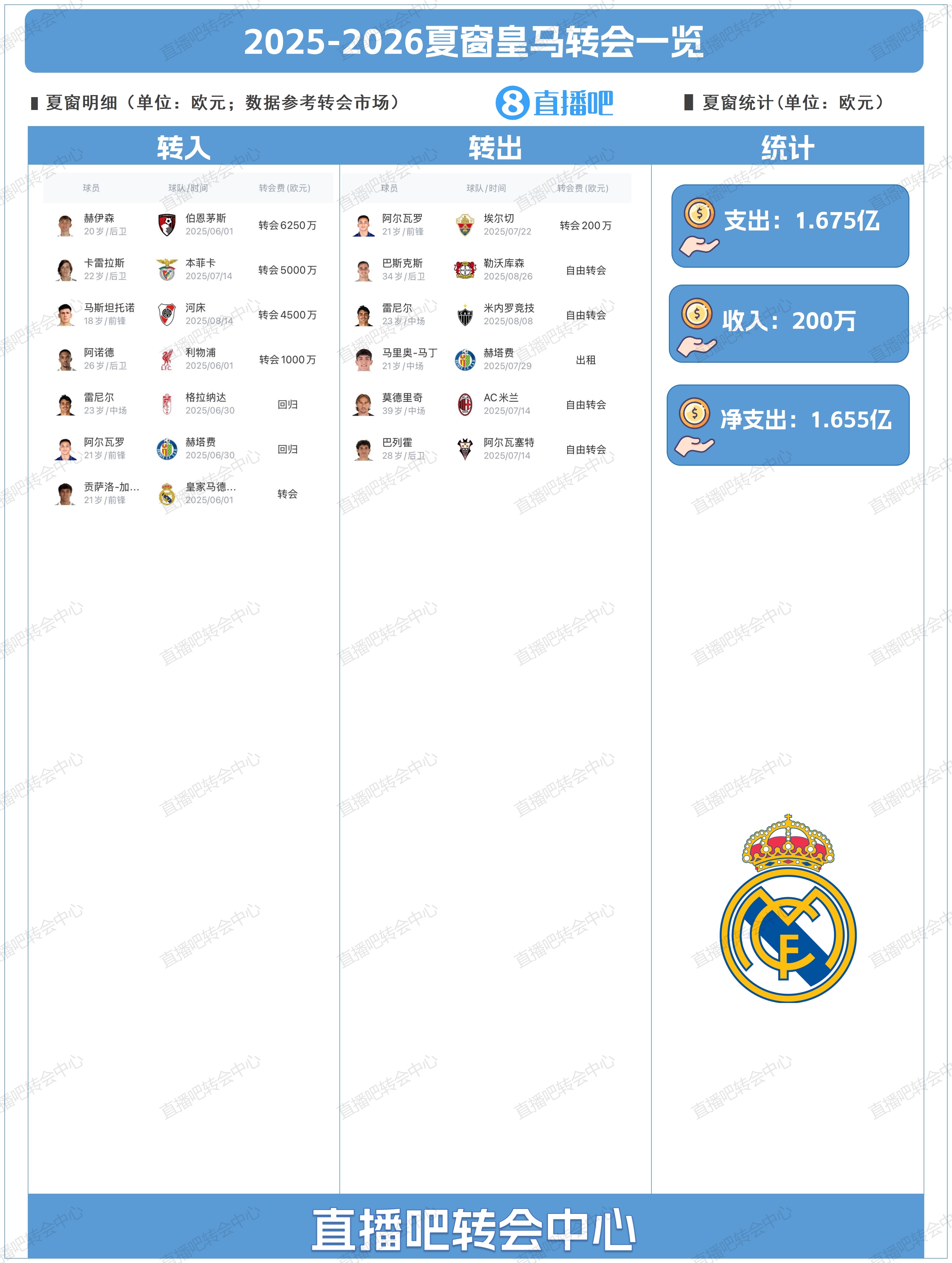 为吧友们回归了皇马今夏的转会操作,吧友们能打几分?
