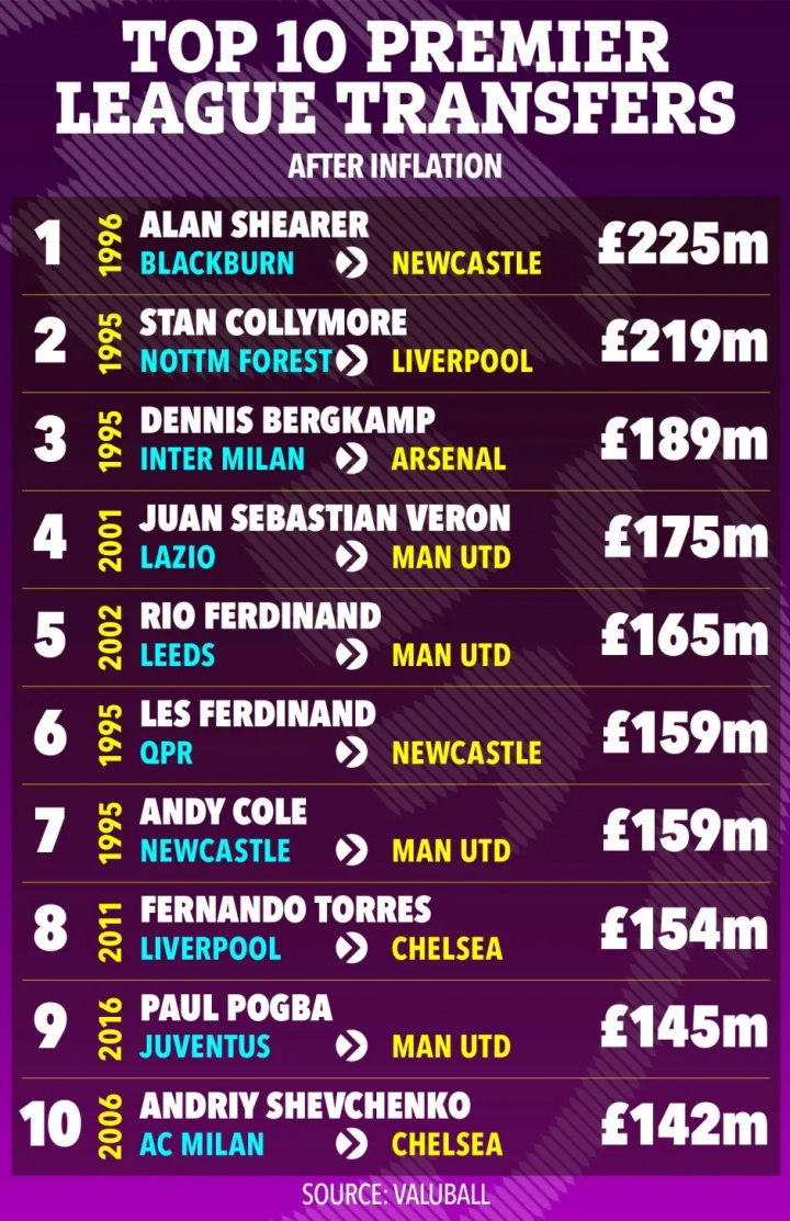 不外太阳报示意,笔据足球金融媒体Valuball的打算,淌若酌量到通货膨大,1.2亿镑以至无法参加英超历史前20,现在的第20名为2023年1.15亿镑加盟切尔西的凯塞多,酌量通胀后为1.24亿镑。