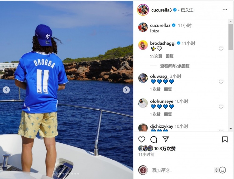 享受假期!库库雷利亚社媒晒度假相片,身穿德罗巴球衣