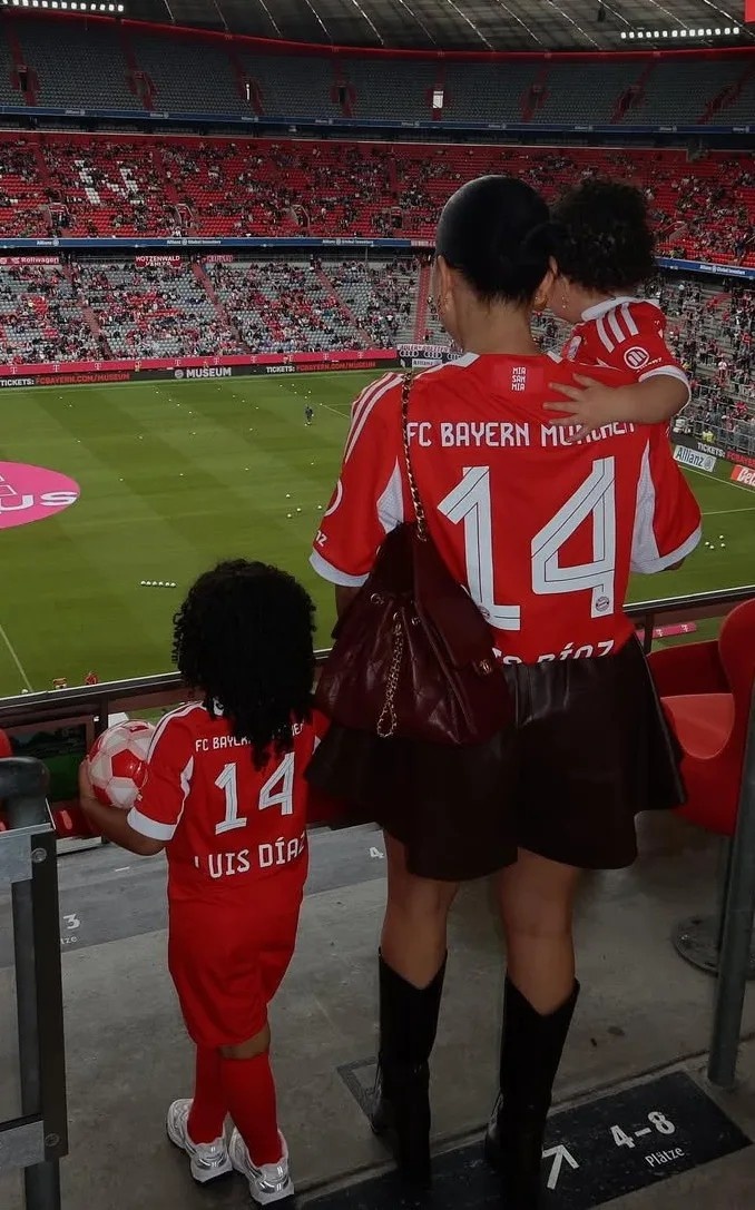 对阵里昂的热身赛,当迪亚斯在34500名不雅众细心下于下半场替补登场时,看台上的庞塞身着14号拜仁球衣,搭配玄色迷你裙与长靴,手拎价值约6800欧元的香奈儿手袋。同业的还有母亲塔蒂亚娜和孩子们。