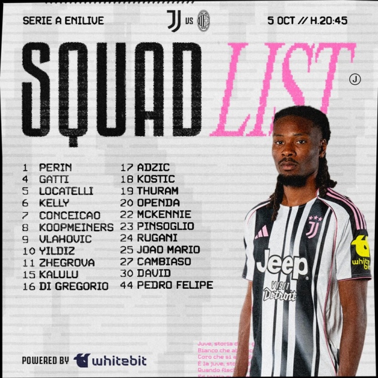 尤文对阵米兰大名单:戴维、K-图拉姆在列,布雷默、卡巴尔缺席