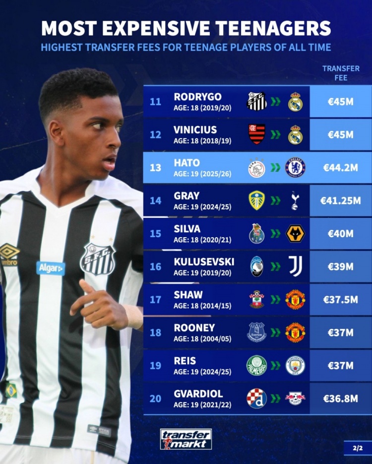 足坛历史U20球员转会费榜:姆巴佩居首,菲利克斯、德里赫特前三