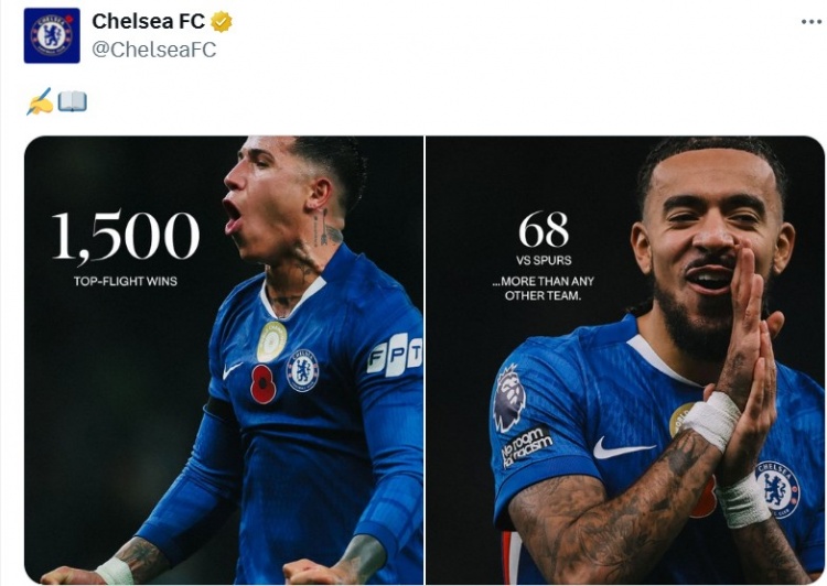 本场比赛亦然切尔西队史得益的第1500场顶级联赛得手,其中对阵热刺68场得手是通盘敌手中最多的,蓝军官推也晒出海报牵记已毕这一里程碑技巧。