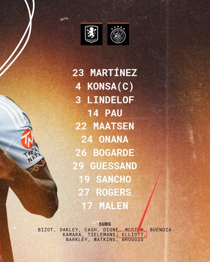雪藏1个月!22岁埃利奥特近6场0出战,踢10场维拉才会3500万买断