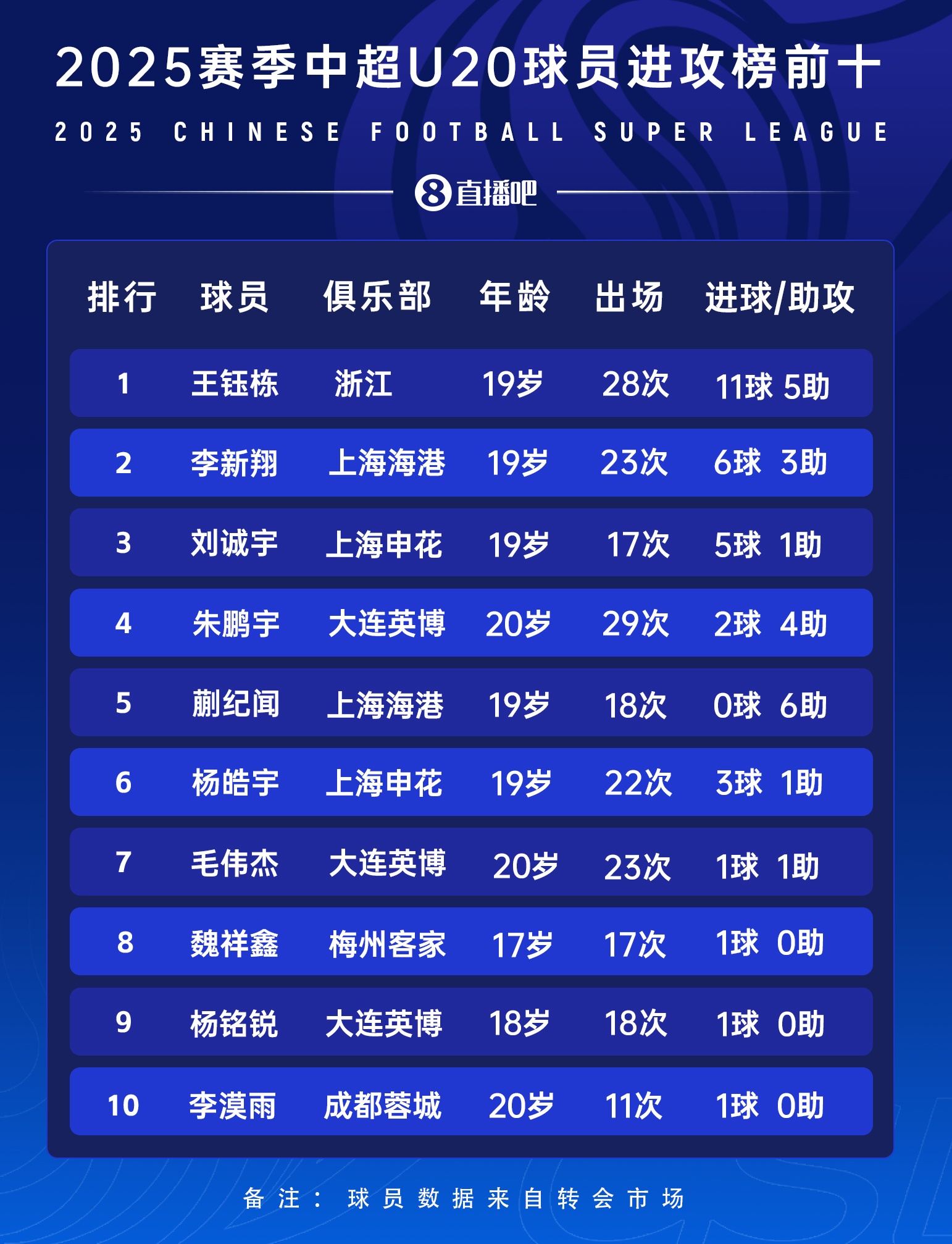 2025赛季中超联赛大幕落下,上海海港告捷卫冕,梅州客家和长春亚泰降入中甲。在漫长的9个月征途中,外助撑起了各队的战术框架,原土中生代球员和宿将贯通着关节作用,在这两股力量的夹缝中,U20球员贫困地寻找着高潮旅途。在王钰栋、朱鹏宇、李新翔、徐彬和魏祥鑫等东说念主的惊艳弘扬背后,更多初涉中超的小将还在为置身瓜代威望而拼搏。