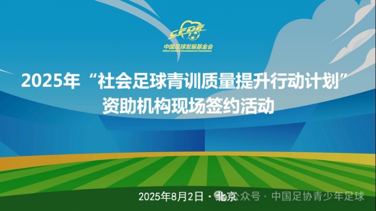 为贯彻落实寰宇足球责任会议精神,助力青训体系诞生,2025年8月2日,中国足球发展基金会“社会足球青训质料拔擢步履规画”资助机构现场签约步履在北京体育大学举办,共有来自寰宇28个省、自治区、直辖市的97家社会青训机构负责东谈主投入了这次步履。