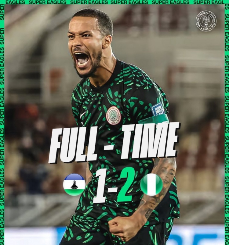 世初赛尼日利亚客场2-1莱索托,小组第三距榜首贝宁3分