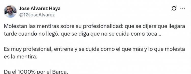Jose Alvarez Haya社媒写谈:“谩骂亚马尔干事气魄的流言令东谈主恼火——他明明莫得迟到,却被传迟到,还被说疏于自我处分。”