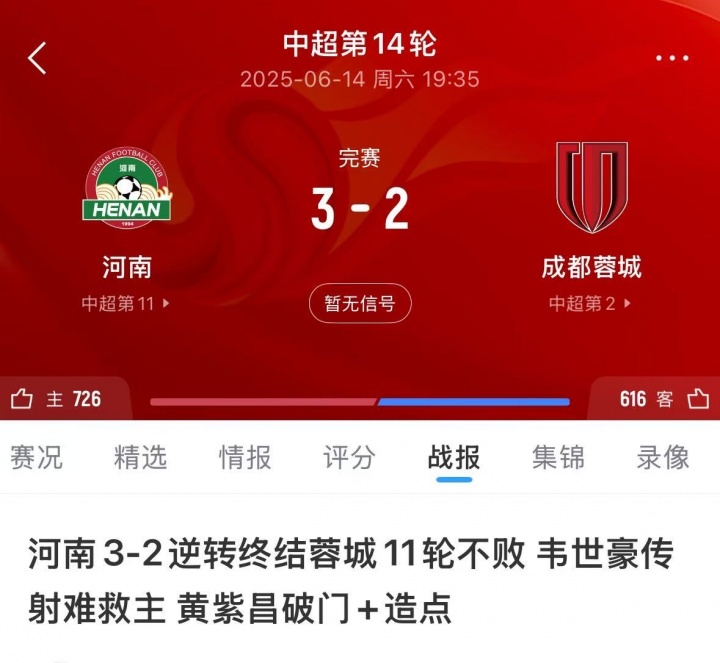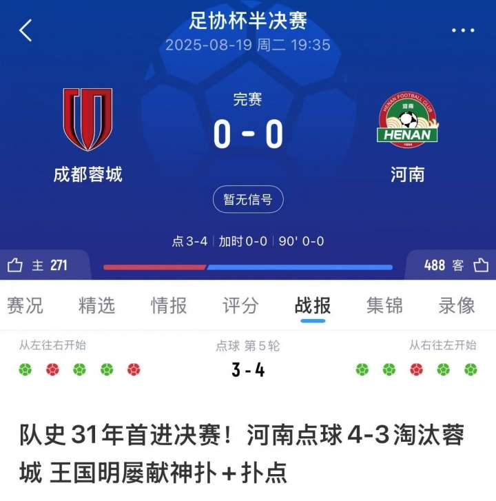 值得一提的是,蓉城本赛季三次靠近河南一说念输球,其中联赛被敌手双杀,足协杯半决赛,终末河南点球大战取胜。