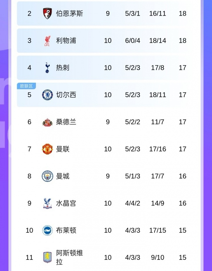 当今英超第2的伯恩茅斯距离英超第11的阿斯顿维拉仅有3分分差,10支军队乱成了一锅粥。
