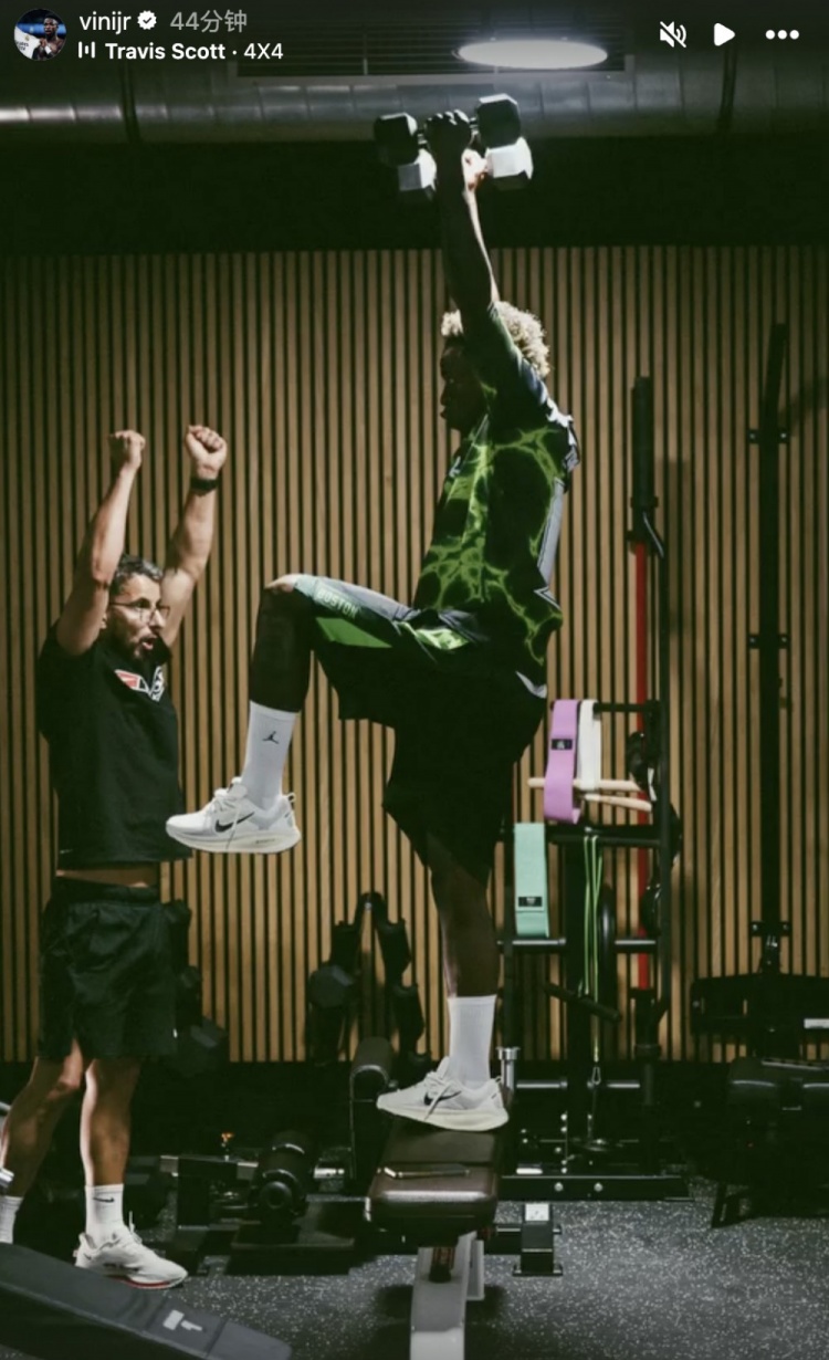 像片中,这位巴西边锋身穿绿色查考服,在体能教师的跟随下进行力量查考,画面显露他正高举哑铃,色彩专注,现象极佳。尽管现在处于休赛期,维尼修斯也曾保抓体能查考,积极备战新赛季。