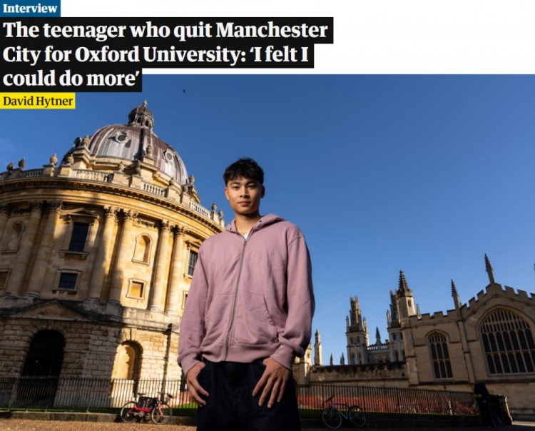 卫报:不妥球星要当学术明星,曼城19岁青训小将被牛津大学中式
