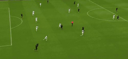 B费操刀主罚,诚然门将判断正确,怎奈力量太大,皮球依旧上钩,B费献艺帽子戏法。
