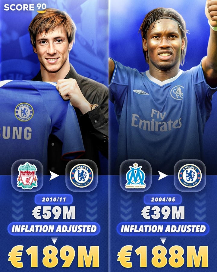 9-托雷斯,2011年利物浦→切尔西,5900万欧,通胀后1.89亿欧