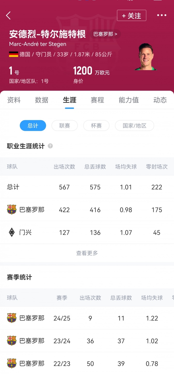特尔施特根昨年9月右膝重伤,赛季末复出后特尔施特根代表巴萨出场了9次。插足夏令转会窗后,巴萨买入了霍安-加西亚,续约什琴斯尼,媒体哄传巴萨但愿特尔施特根离队,但最终特狮将连续留在巴萨。